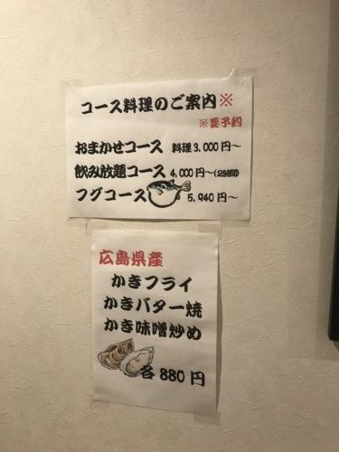 店内のメニューをみてみるとふぐのコースがありました!そうなんです!予約をすればふぐをいただくことができます!ふぐがいただけるお好み焼き屋さんですよ~!