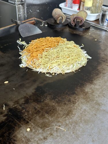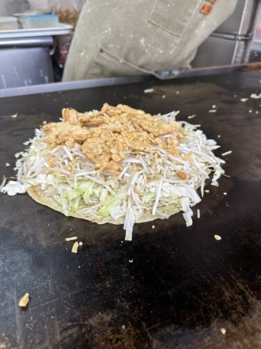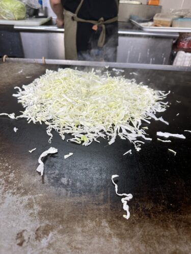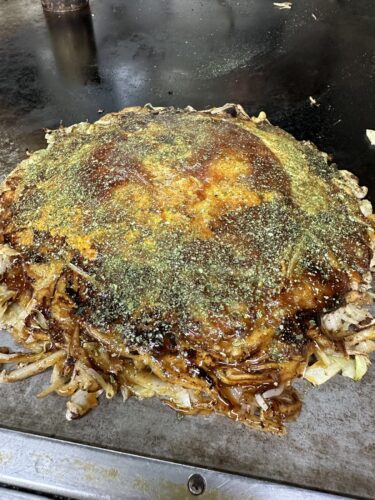 目の前のお好み焼きがどんどん大きくなっていきます。正直食べれるのかと心配になるほど、、