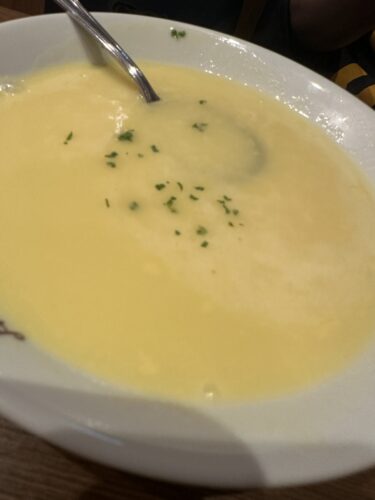 続いてポタージュをいただきます。昔懐かしい風味がたまらないです。