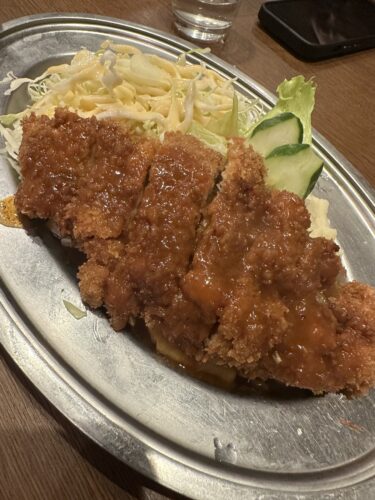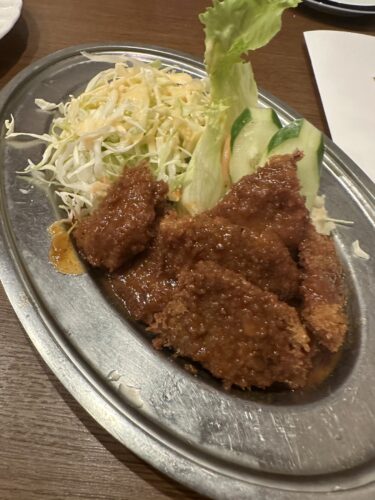 鶏肉も食べたいな~ということでチキンカツをお願いしました!チキンがとってもジューシーで最高でした!ソースも美味しい~!これまた野菜もたっぷりついてきますよ~!