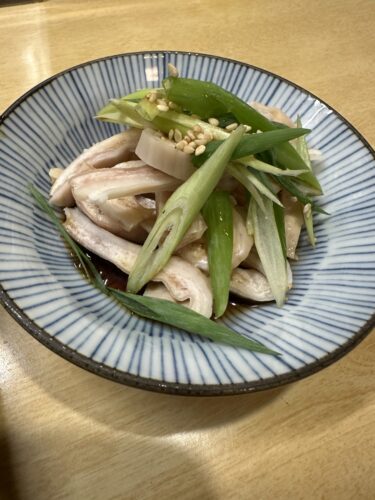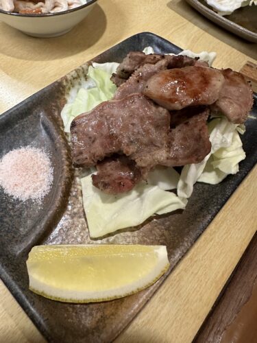 そして初めていただく豚のタンをお願いしました。豚のタンって美味しい記憶があったので、天然塩をつけていただいてみるとこれが抜群に美味しい~!なんて美味しんだ~!
