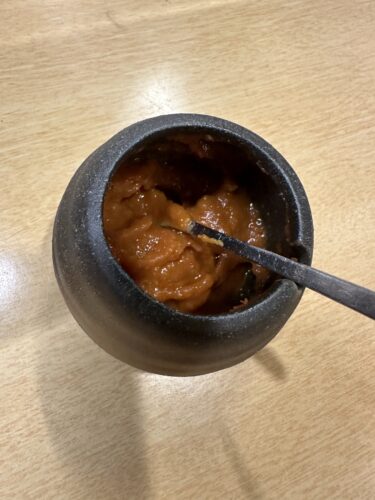 ふたをあけてみると中には辛みそが!自家製なんですって!それをちょんちょんとつけていただきます!確かにあう~~~、、、からの、、、辛ッ!でもうまい~!癖になる~!