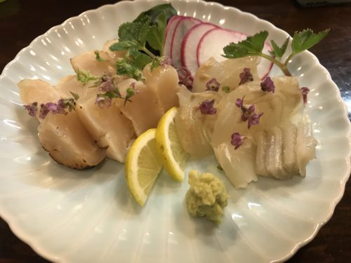 お刺身はホタテの炙りとヒラメの昆布〆!ホタテも肉厚でおいしい~!久々にホタテをいただきましたが、とってもおいしいです~!ヒラメもうまみが満点でしたよ~!