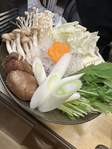 野菜が登場したのでお鍋に投入!たっぷり野菜とスープを絡ませていただきます!最高です!