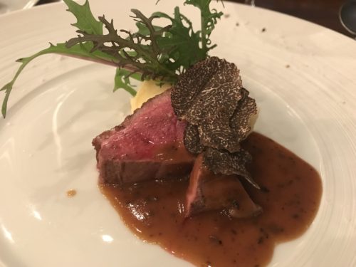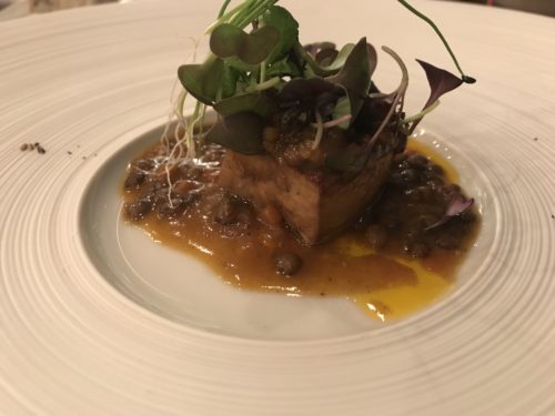 ここフォアグラが登場しました!レンズ豆と一緒にいただきましたが、本当においしい~!肉厚のフォアグラにはびっくりです!