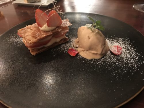最後のデザートはミルフィーユ!そしてヘーゼルナッツのアイスクリーム!このアイスクリームがめちゃめちゃおいしい~!本当に最高でした~!