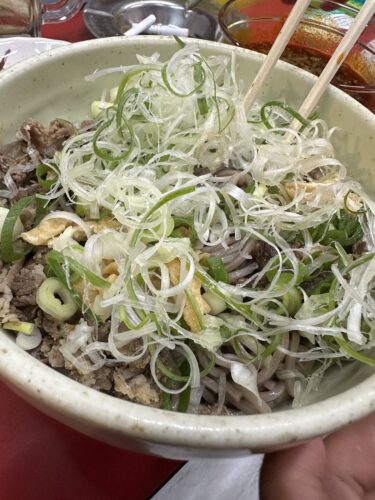 続いて肉そばでしょうか!お出汁のいい香りがしますね~!飲んだ後の蕎麦ってほんと美味しい!身に沁みます!