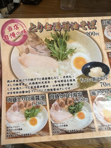 お昼前に訪れたので席が1席あいていました!セーフ!着席してメニューを確認します。私は今回も前回美味しかったとり白湯醤油そばをお願いしました!