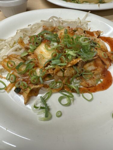 豚キムチも定番ですよ~!キムチもたっぷり入っています。キムチってお店によってお味が違いますがはぜやさんのキムチは鉄板で焼いた時に一番美味しいキムチを使っていらっしゃいます。最高です!