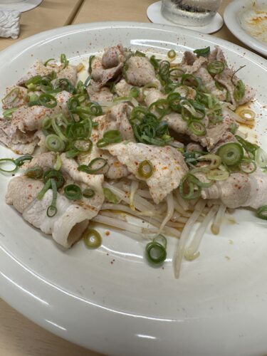 生ビールで乾杯してメニューからいろいろとお願いしました。まずは大好物の豚しゃぶから!はぜやさんの豚しゃぶ何回食べたことか!見るだけで味がわかるくらい食べていますが、この日もとっても美味しい~!最高です!