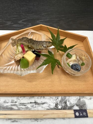 まずは八寸から!どれもとっても美味しい!イチジクも美味しい~!アマゴの揚げ物も香ばしくて最高でした!