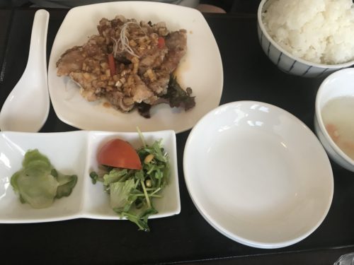 まずは油淋鶏が登場しました!おいしそうな油淋鶏!友人はおいしそうに食べていました!