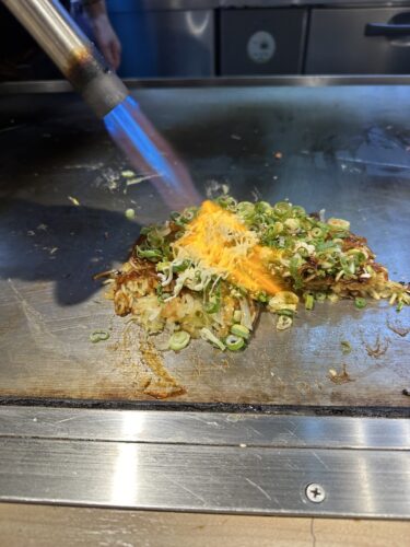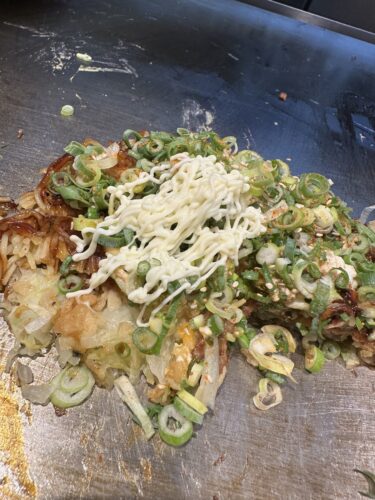 どういうことかな~と思ったらお好み焼きの一部にマヨネーズをかけて上から炙ってくださいました!