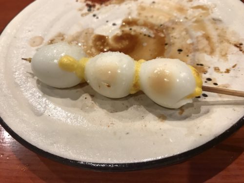 つづいてうずらが!このうずら、本当に最初にいただいたときにびっくりしました!これ本当にうずらなの?って。うずらの黄身の部分が半熟ぽいんです。うずらってどこで食べても一緒だとおもっていたのですが、たにぢさんのはまったく違います!これはぜひ食べて感動してほしいです!