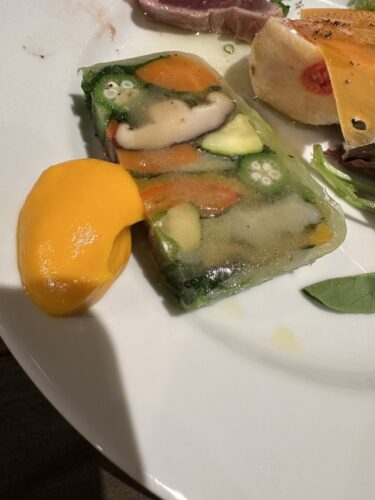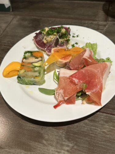 野菜のテリーヌ、カツオ、イチジクと生ハムとたっぷりいれてくださいました!とっても美しいですね!いただいてみるとめっちゃ美味しい~!