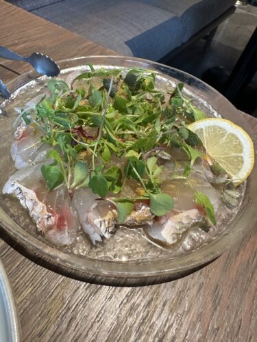 続いて鮮魚のカルパッチョをいただきます。この日は真鯛でした!こちらも美味しい~!とっても食べやすかったです。