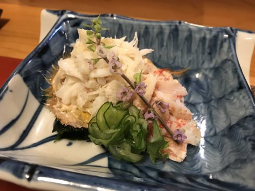 ネタの箱をみているとおやおや?蟹があるじゃないですか!ということで信念ということでカニもお願いしてみました~!身がぎっしり詰まっていてこちらも超おいしいです!あらたさんではにぎりだけではなくてこういう一品料理も豊富なので飽きこなくて毎回いろんな形で感動させてくださいます。