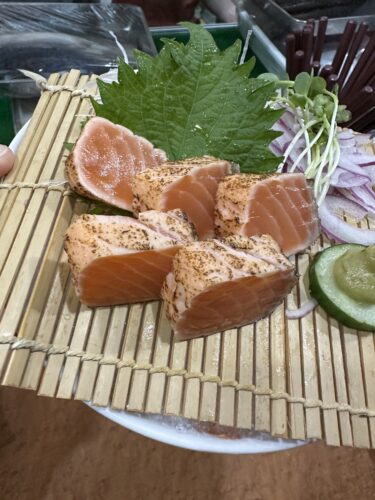 次のお刺身はサーモン!厚めに切ってくださいました!