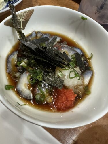 そこへハゲが登場しました!美味しそう!肝もたっぷりつけてくださいました!ポン酢に肝をときながらいただきます。めちゃ美味しい~!今年もいいスタートがきれそうですね!