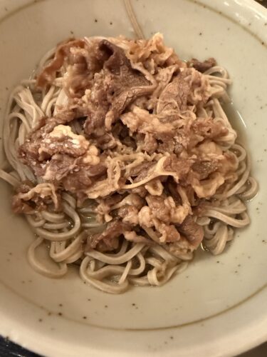 そこへ釜揚げそばのお肉トッピングが登場しました!これまた美味しそうですね~!