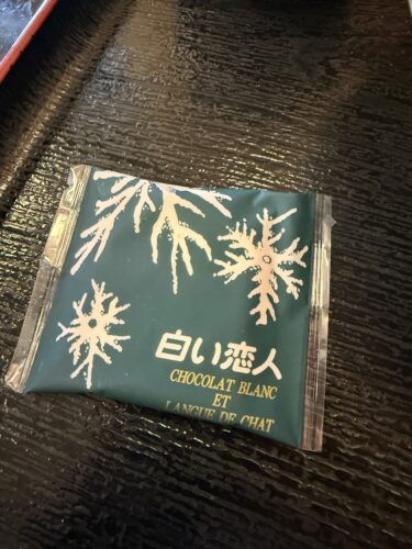 ふとみるとお箸のところに白い恋人が!こういう心遣いほんとありがたいです。さりげなくおすそわけしてくださって!いつもありがとうございます!