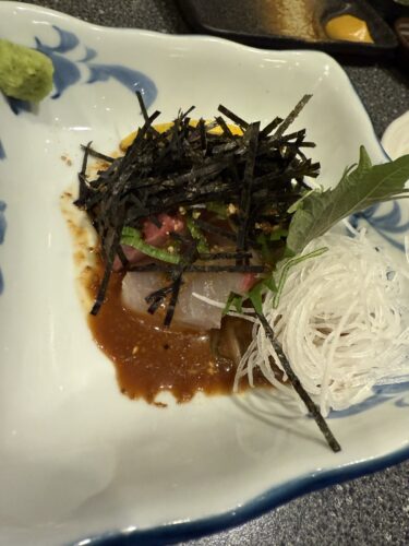 続いてごまカンパチをお願いしました!焼鳥屋さんだけどお魚もめちゃくちゃ美味しんです!このごまカンパチはほんと秀逸ですよ~!