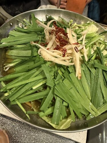 そして麺を入れていきましょう!もつ鍋のスープが美味しいのでスープが早くなくなっちゃうんですが、足してくださいました!