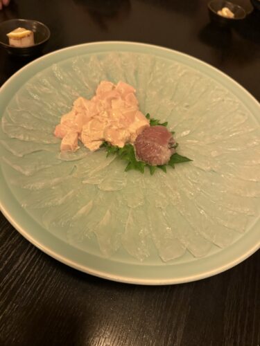 そこへカワハギが登場しました!肝の量でサイズ感がつたわってきますね!まずは肝からいただいてみます!めちゃうま~!
