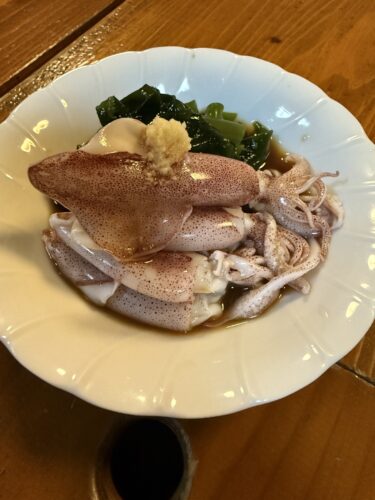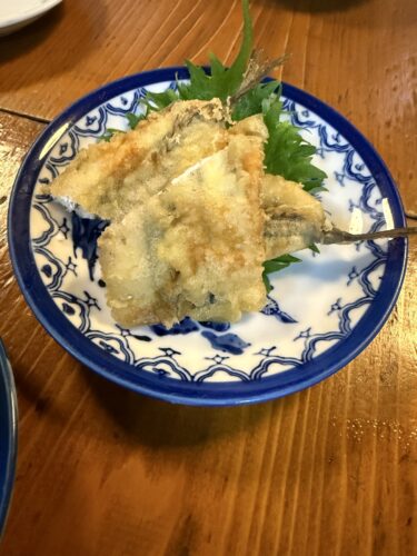 子イカ、白身の天ぷら、きんぴらと登場しました!子イカはポン酢でいただきます。めちゃうまです!