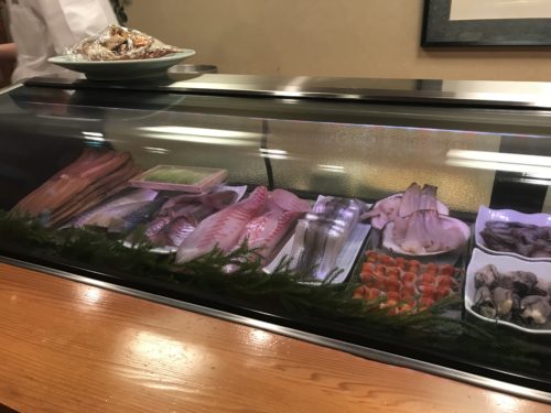 この日もおいしそうなネタが並んでいます。ショーケースの上にはなんと蟹が!ということでカニもお願いしてみました!