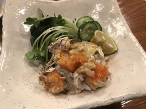 蟹が登場しました!大将が丁寧にほぐしてくれています。いうまでもなくとってもおいしい~!お酒がすすみますね~。大将と息子さんといろいろお話しながらお料理を楽しみます。