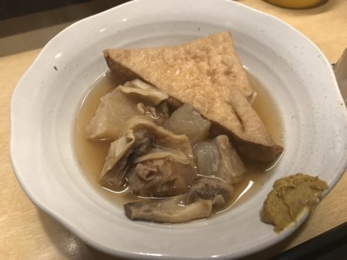 生ビールをいただきながらまずはおでんをお願いしました!みのわさんのおでんはとってもおいしいですよ~!数年前に私の好きなおでん屋さんがなくなってしまって悲しんでいたらみのわさんのおでんがおいしくってそれ以来はまっています!