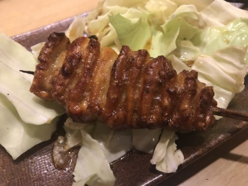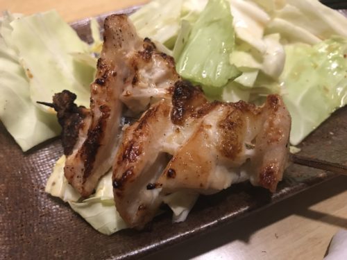 みのわさんの看板メニュー皮が登場しました!かりっと焼き上げてあるのですが、とってもジューシーで超おいしいです。最初のこの皮を食べた時はこれは皮なのか?本当は違う部位じゃない?ってかんぐってしまったほどです。