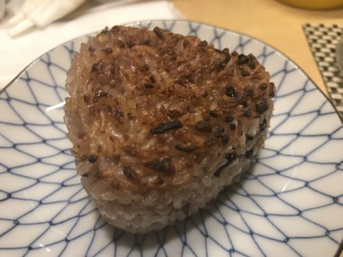 最後には最近メニューに加わった焼きおにぎりをお願いします!国産十八穀米の焼きおにぎりなので体にも優しいですよ~!もうめちゃくちゃおいしいです~!