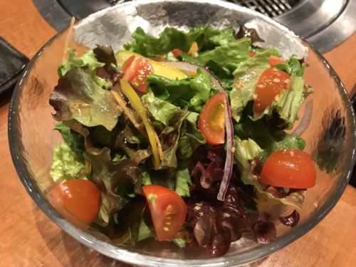 まずは生ビールで乾杯させていただいて、サラダをいただきます。色鮮やかでおいしそうでしょう!おいしいです!