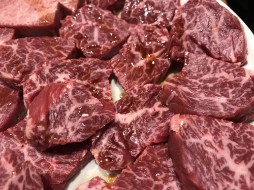 続いて赤身のイチボの部分ですね~!たまにサシが入りまくってるときもあるそうですが、この日入荷されたお肉は私にとっては最上の赤身状態でした!こちらも柔らかくてとってもおいしい~!肉のうまみをしっかり感じることができますよ~!