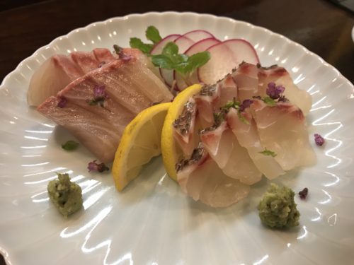 続いてお刺身はカンパチと鯛昆布〆をお願いしました!まずはカンパチからいただきます!甘い!いや~おいしいカンパチです!鯛の昆布〆ももちろんおいしいです~!うまみをしっかり感じることができました~!あ~食べることって幸せですね~!
