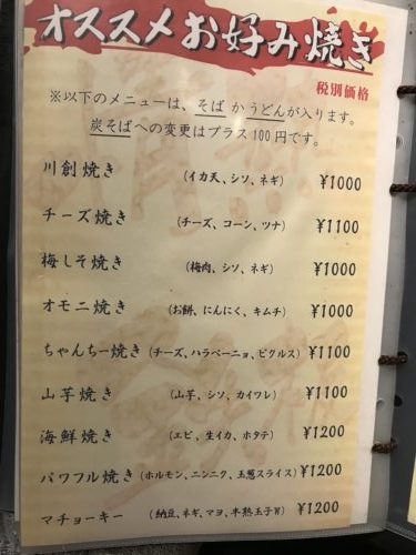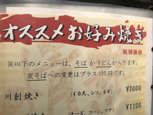 さて、知らないことが最近多くなってきていますがお好み焼き屋さんに伺ってみるとそこにも知らないメニューが!伺ったのは川創さんです!まずは焼酎のソーダ割りをお願いしてメニューをみながら何をいただこうかな~と。すると友人が、、、