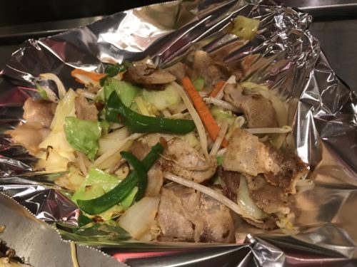 つづいて私がお願いしたお好み焼きが登場しました!川創さんのお好み焼きは特に麺がおいしいんです。なんといいますか、焼きそばまではいかないんですが水分が結構ぬけているのでとってもおいしい!