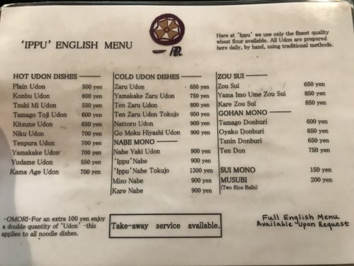 外国語メニューも用意してあります。しかもかなり以前から!この雰囲気を味わいに海外からのお客様がおおいんだと思います。