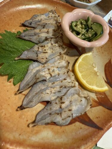 おっ!とり貝いいですね!これはぜひとも頂きたい!ということで炙っていただくことに!少しだけレモンをたらしていただいてみると最高!とんでもなく美味しいです~!さすがですね!
