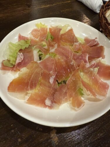 まずはハモンセラーノから!レタスと一緒にいただくのがいいんです!酸味と塩味のバランスが最高!