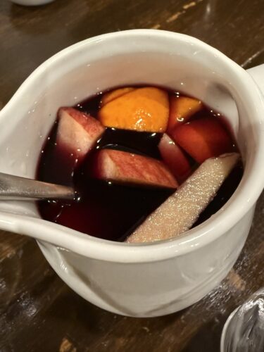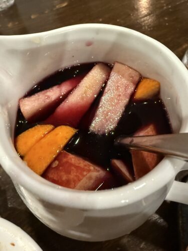 一緒にサングリアをお願いしました!たっぷり果物も入っています。この果物もちゃんとたべれますからね~!
