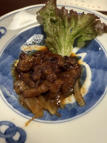 続いていい香りとともに牛肉のタレ焼きが登場しました!これがめっちゃ美味しい~!濃い目のタレがたまらないですね~!柔らかくてとっても食べやすい~!