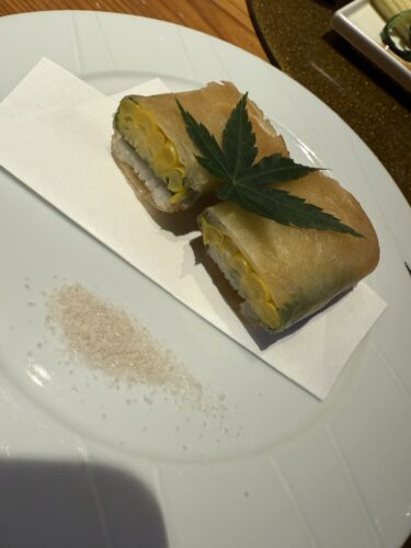 アナゴとトウモロコシの春巻きはサクッとした食感で美味しい~!2つ組み合わせてあるのがいいですね!