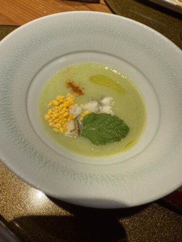 枝豆のすり流しをいただきます。枝豆も旬ですよね~!いい香りがします!季節ごとのすり流しってほんと楽しみなんですよ~!