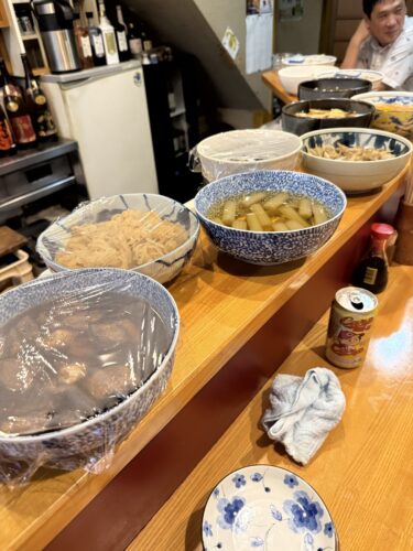 元気にしていますよ~!ということでその足で伺ってきました!お母さんもまだまだ元気いっぱいでいらっしゃいます。カウンターにはたくさんのおばんざいが並んでいます!