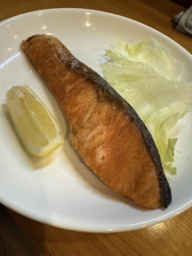 大好物の塩鮭をいただきます!塩加減がほんと最高!お酒にぴったりですよ~!