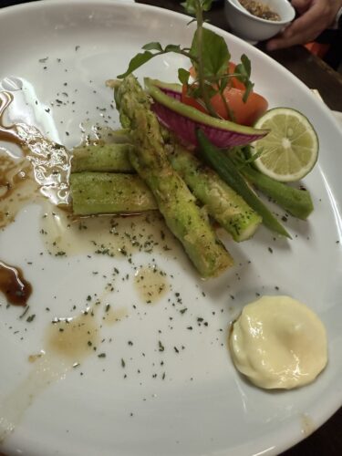 アスパラバターが登場しました!太目のアスパラがこれまた美味しい~!盛り付けが洗練されていますよね~!