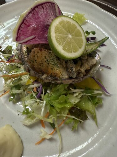 先輩が貝柱や牡蠣が食べたいとおっしゃったのですが時期的になくて、、、じゃああわびは?アワビはあります!このアワビがこれまた立派!すぐ後ろの生け簀で活かしてありましたので鮮度も抜群でした!